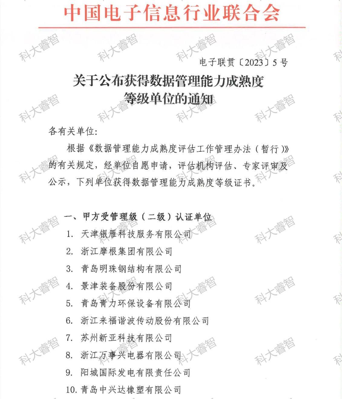 祝賀!科大睿智服務(wù)企業(yè)通過(guò)第五批DCMM名單